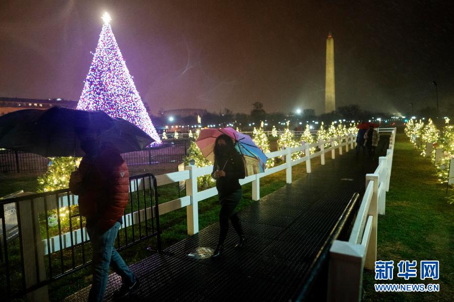 12月24日,人們在美國華盛頓白宮南側的國家圣誕樹區(qū)域游覽。