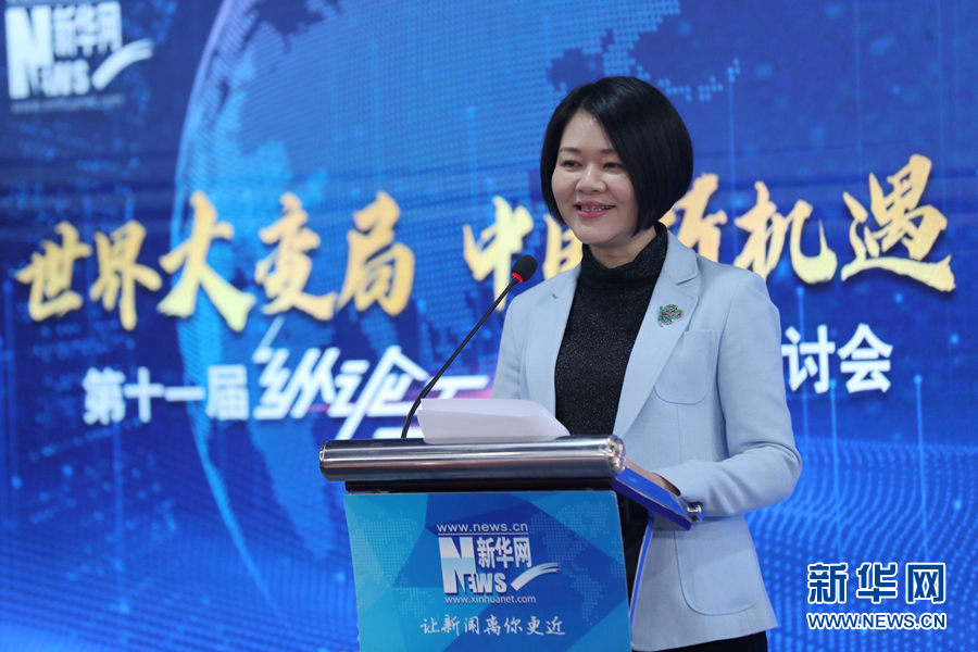 1月8日,新華網(wǎng)第十一屆“縱論天下”國際問題研討會(huì)在北京成功舉行。圖為新華網(wǎng)黨委書記、副董事長徐姍娜發(fā)表致辭。新華網(wǎng) 郭小天 攝