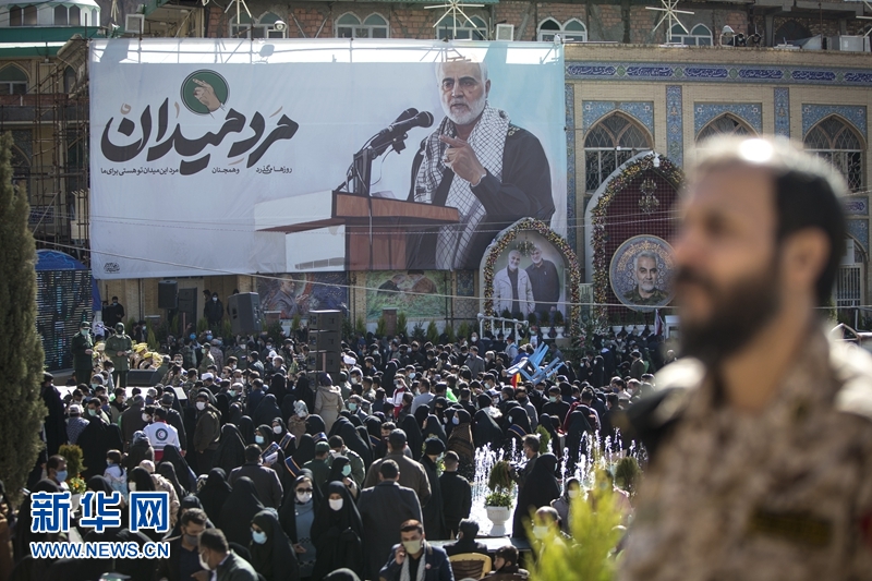 2021年1月2日,人們?cè)谖挥谝晾士藸柭囊了固m革命衛(wèi)隊(duì)下屬“圣城旅”指揮官蘇萊曼尼墓附近參加他的遇難周年悼念活動(dòng)。2020年1月3日,美國(guó)在伊拉克首都巴格達(dá)發(fā)動(dòng)襲擊,殺死伊朗伊斯蘭革命衛(wèi)隊(duì)下屬“圣城旅”指揮官蘇萊曼尼等人。新華社發(fā)(艾哈邁德·哈拉比薩斯攝)