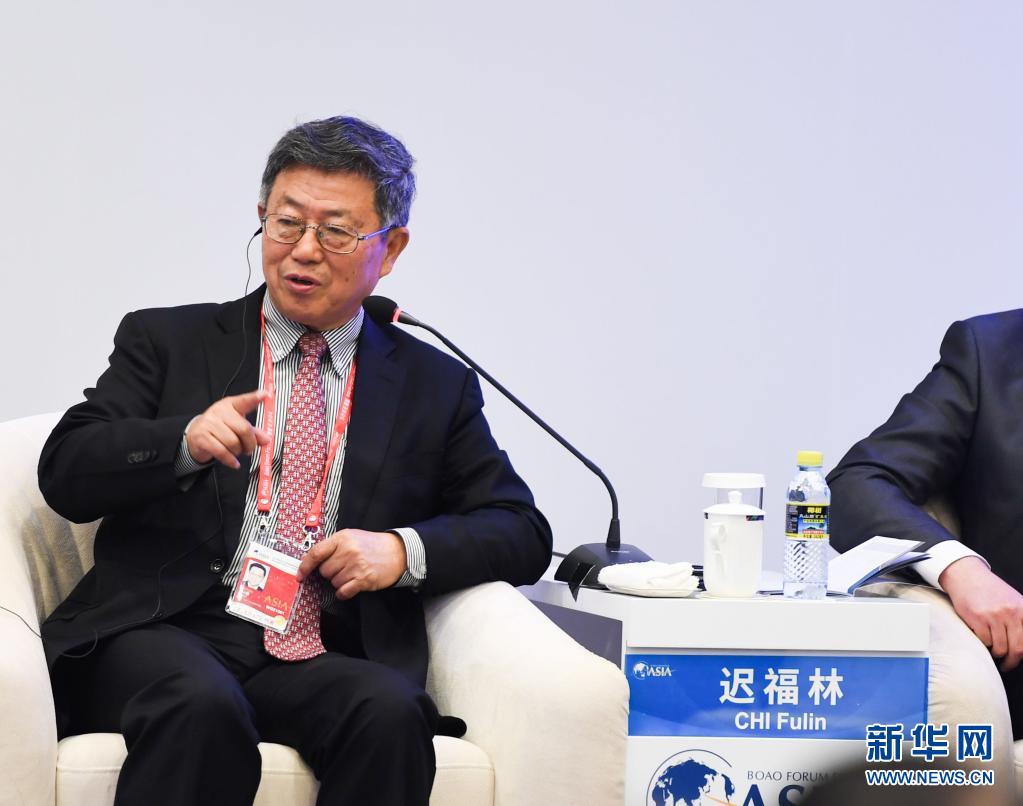 中國(海南)改革發(fā)展研究院院長遲福林在博鰲亞洲論壇2018年年會“21世紀(jì)海上絲綢之路島嶼經(jīng)濟(jì)”分論壇上發(fā)言(2018年4月9日攝)。新華社記者 楊冠宇 攝