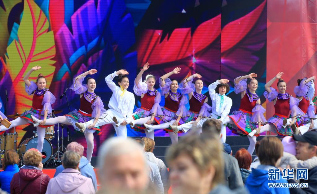 5月9日,演員在白俄羅斯首都明斯克勝利日節(jié)慶活動(dòng)現(xiàn)場(chǎng)進(jìn)行文藝表演。