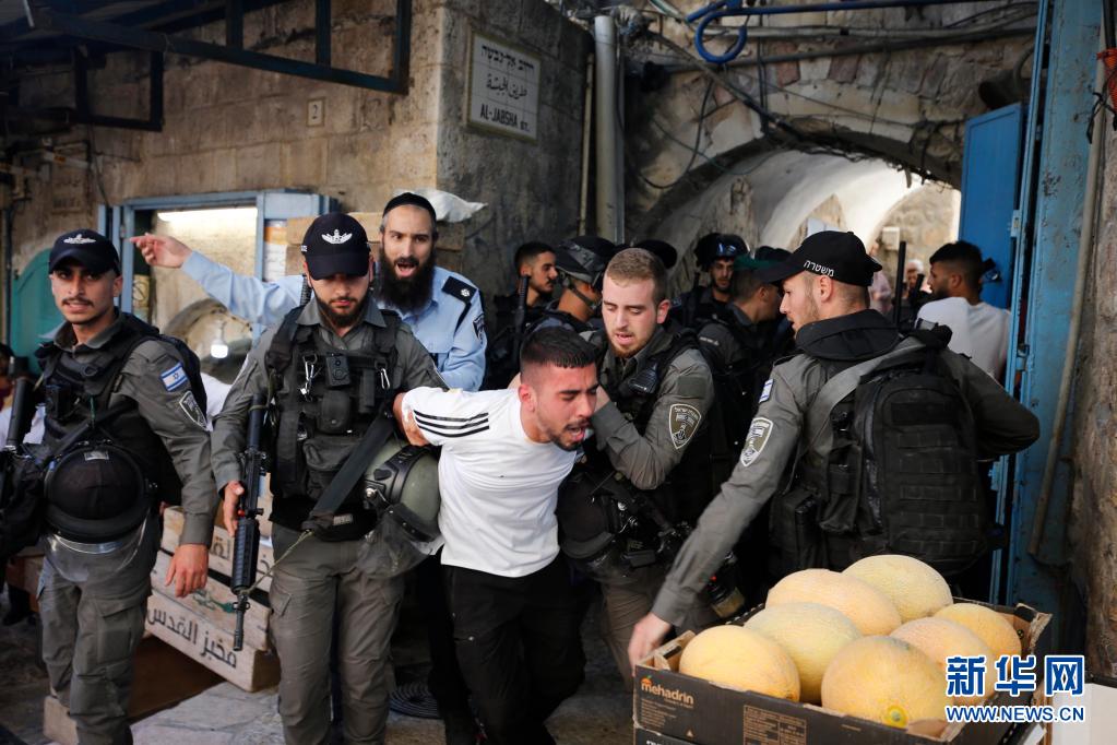 5月18日,以色列警察在耶路撒冷逮捕一名巴勒斯坦男子。
