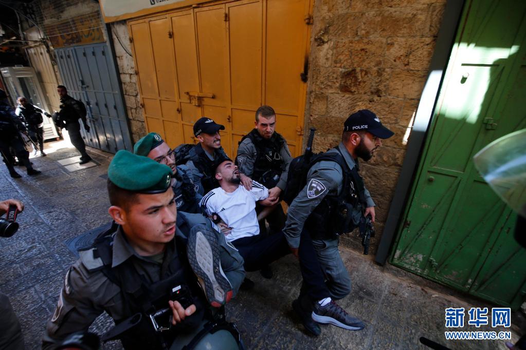 5月18日,以色列警察在耶路撒冷逮捕一名巴勒斯坦男子。