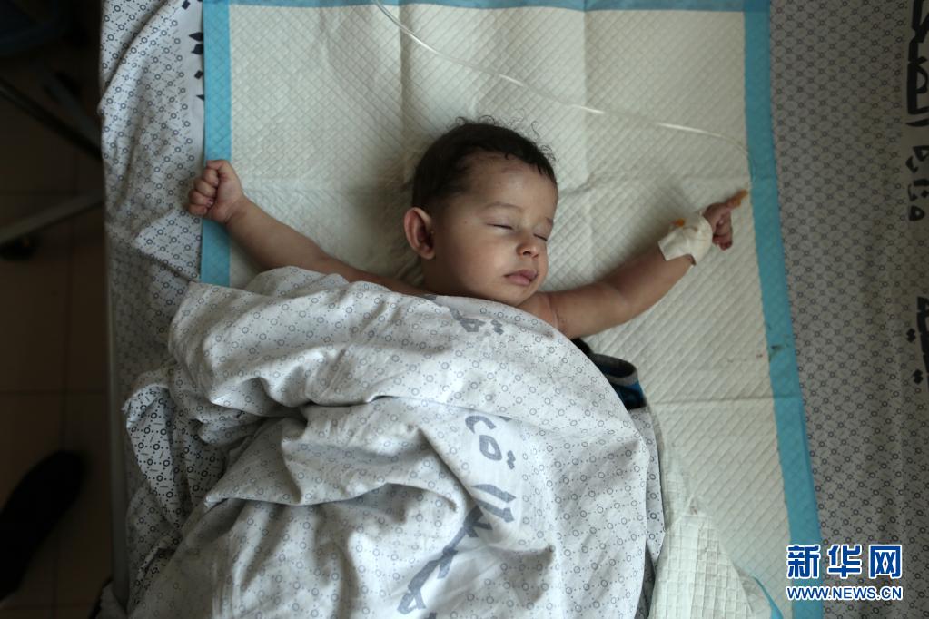 5月20日,一名因空襲受傷的巴勒斯坦兒童在加沙地帶城市汗尤尼斯的醫(yī)院中接受治療。