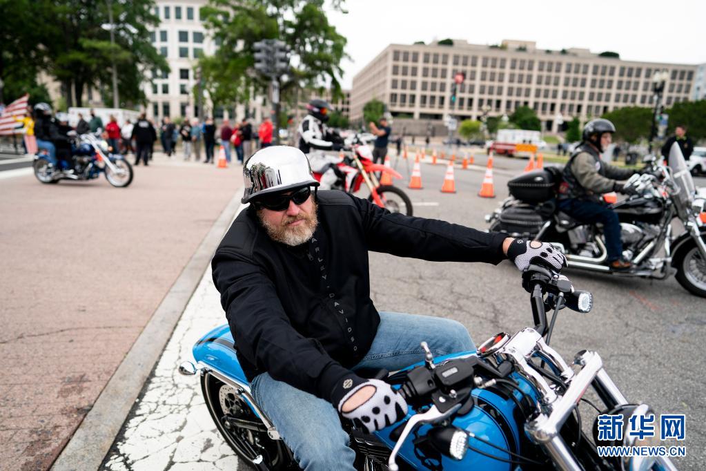 5月30日,在美國首都華盛頓,人們參加“滾雷”摩托車大游行。