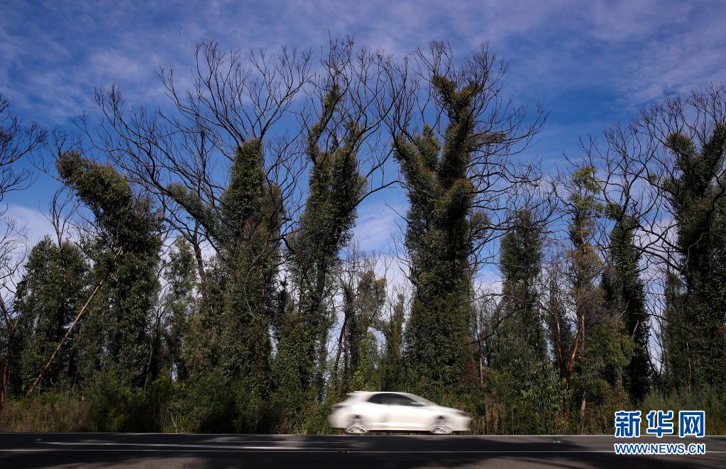 6月1日,在澳大利亞悉尼以西的藍山地區(qū),公路旁遭受2020年夏天山火災害的林地部分植物已經(jīng)恢復繁茂。