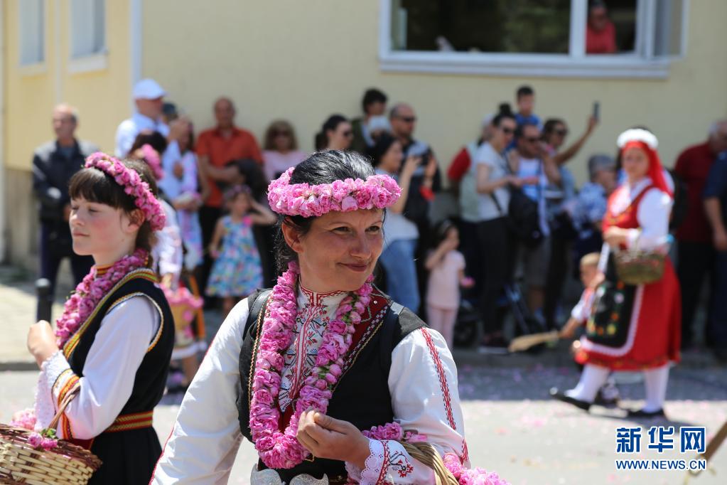 6月6日,在保加利亞卡贊勒克,人們參加玫瑰節(jié)游行。