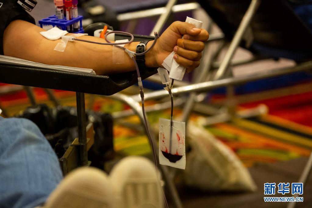 6月14日,在美國紐約州長島地區(qū)的尤寧代爾,獻(xiàn)血志愿者在美國紐約血液中心舉行的獻(xiàn)血活動(dòng)上獻(xiàn)血。