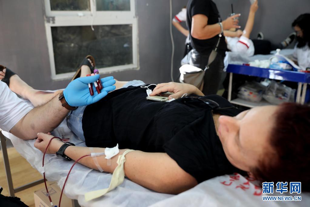 6月14日,志愿者在以色列中部城市莫迪因獻血。新華社發(fā)(吉爾·科恩·馬根攝)