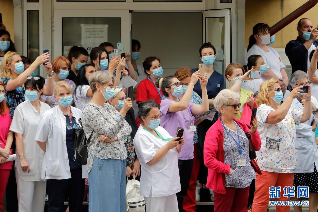 當日,羅馬尼亞首都布加勒斯特一個樂隊在該國一家傳染病醫(yī)院——馬太·巴爾什醫(yī)院演出,向抗擊新冠疫情的醫(yī)務(wù)工作者致謝。