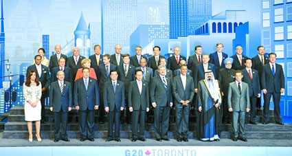 2010年6月,二十國集團(tuán)第四次峰會在加拿大多倫多舉行。多倫多峰會確定了增長的主調(diào),信守并履行了“強(qiáng)勁、可持續(xù)和平衡增長框架”和金融監(jiān)管改革等主要日程,在發(fā)達(dá)國家削減財政赤字、國際金融機(jī)構(gòu)治理改革、反對貿(mào)易保護(hù)主義等問題上提出了一些具體的時間表,并強(qiáng)調(diào)了二十國集團(tuán)的首要任務(wù)是確保和加強(qiáng)經(jīng)濟(jì)復(fù)蘇。